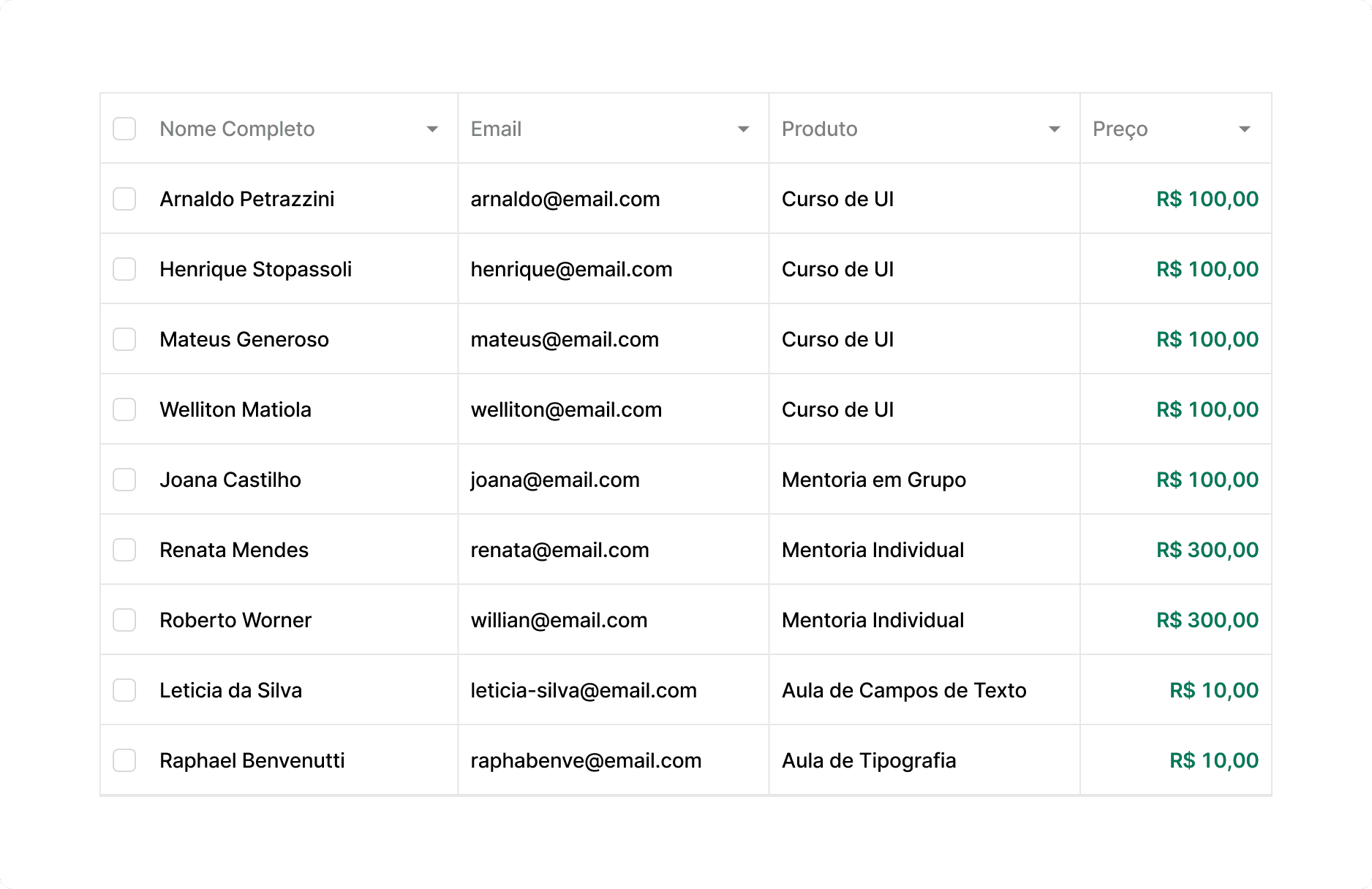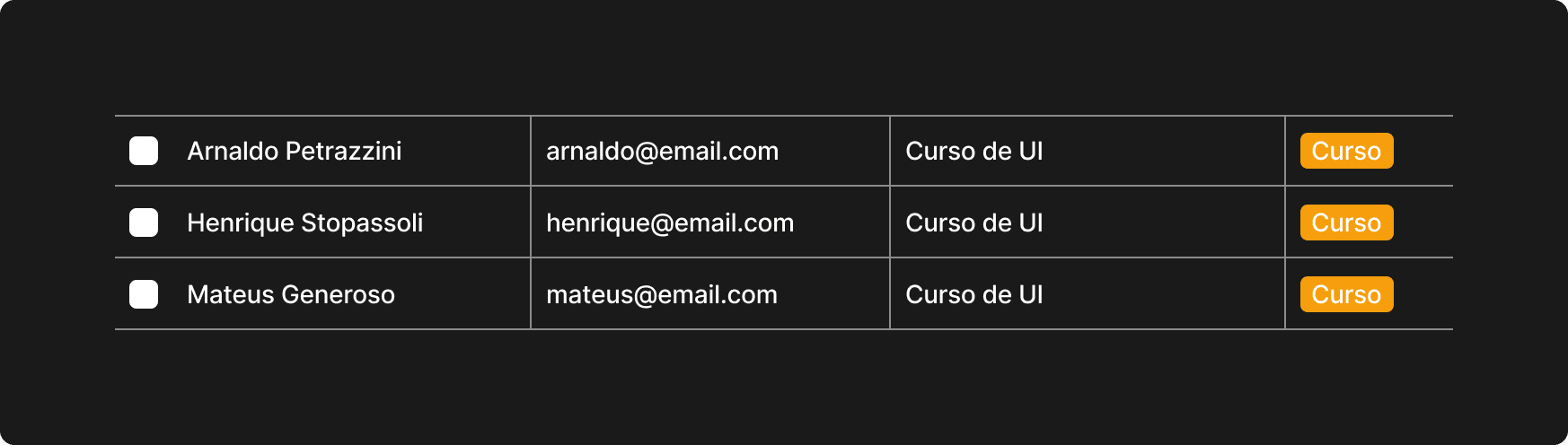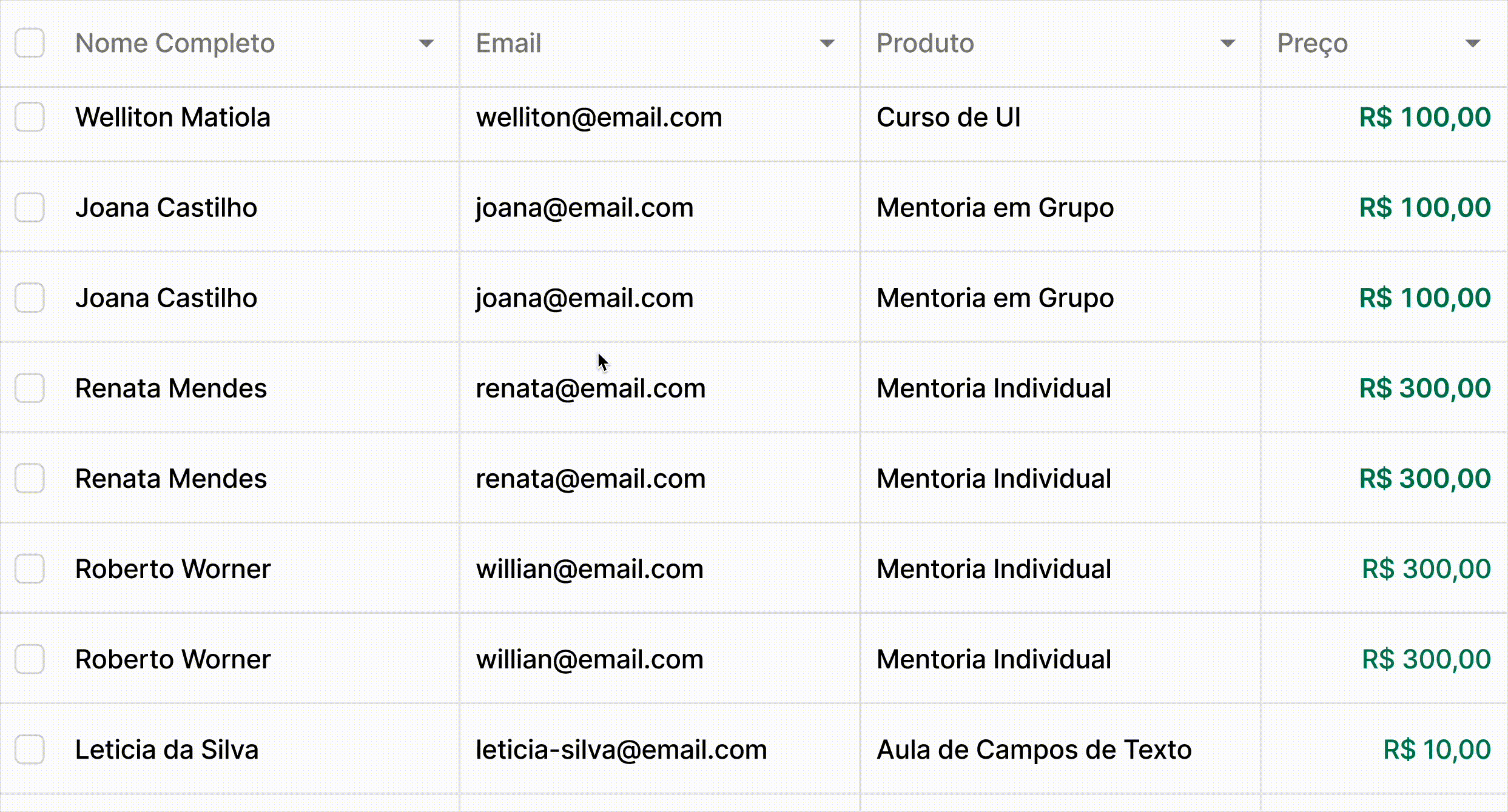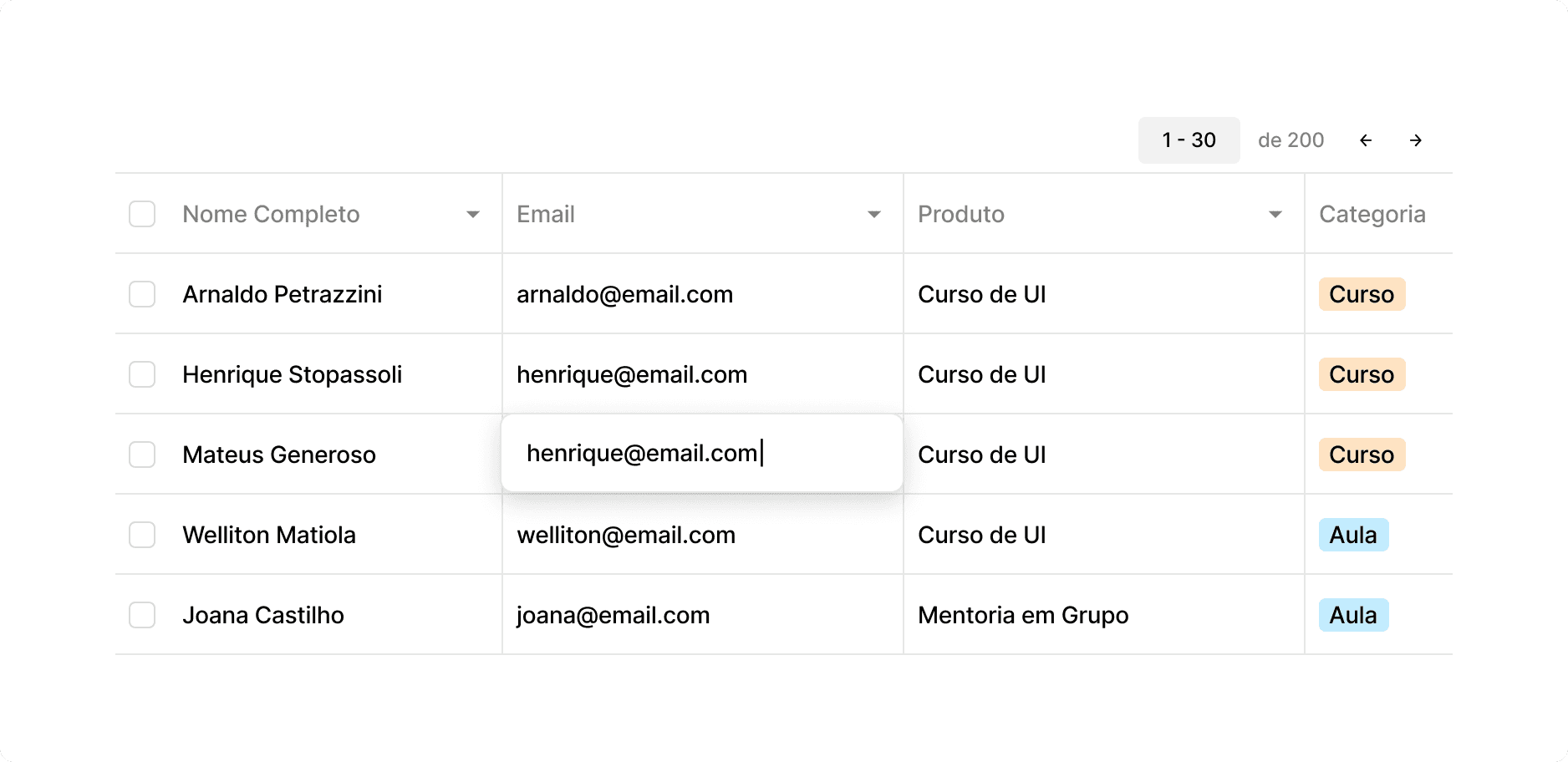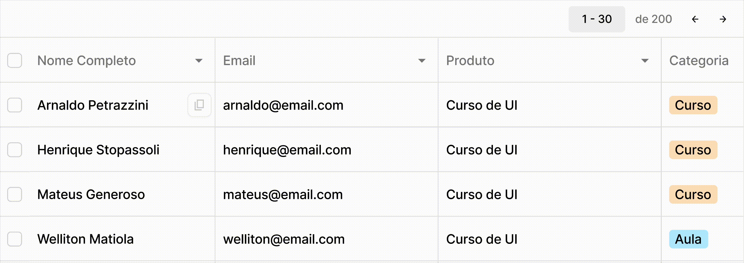 Ordem de Importância: As colunas devem ser organizadas da esquerda para a direita (no ocidente), começando pela informação mais importante para o contexto do usuário (ex: ID, E-mail ou Categoria).